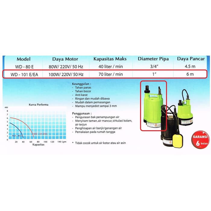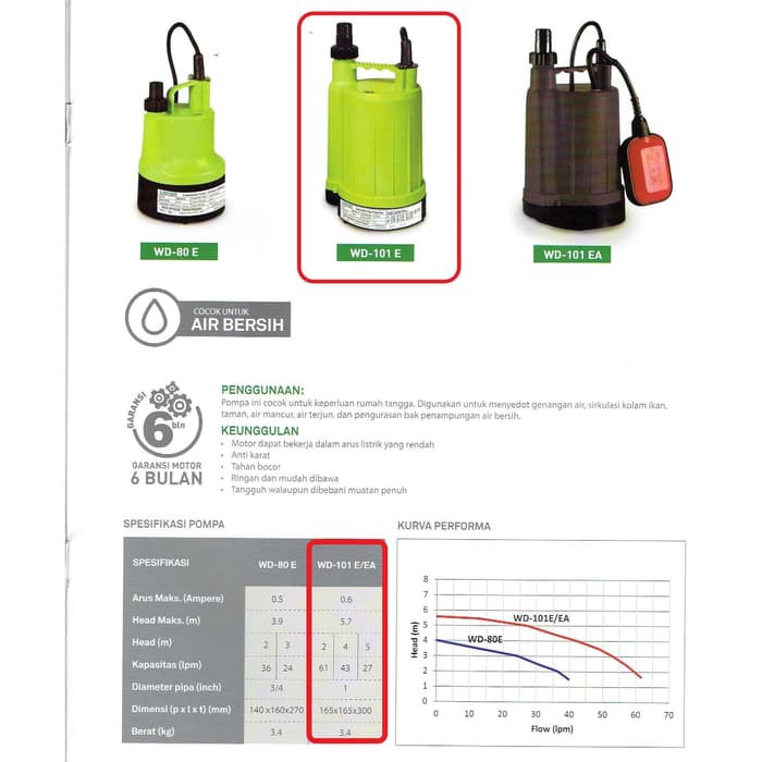 Pompa Air Celup WASSER WD 101 E WD101E kuras kolam tandon aquarium MURAH