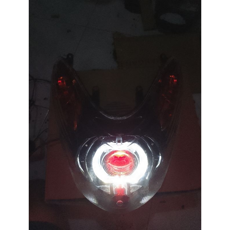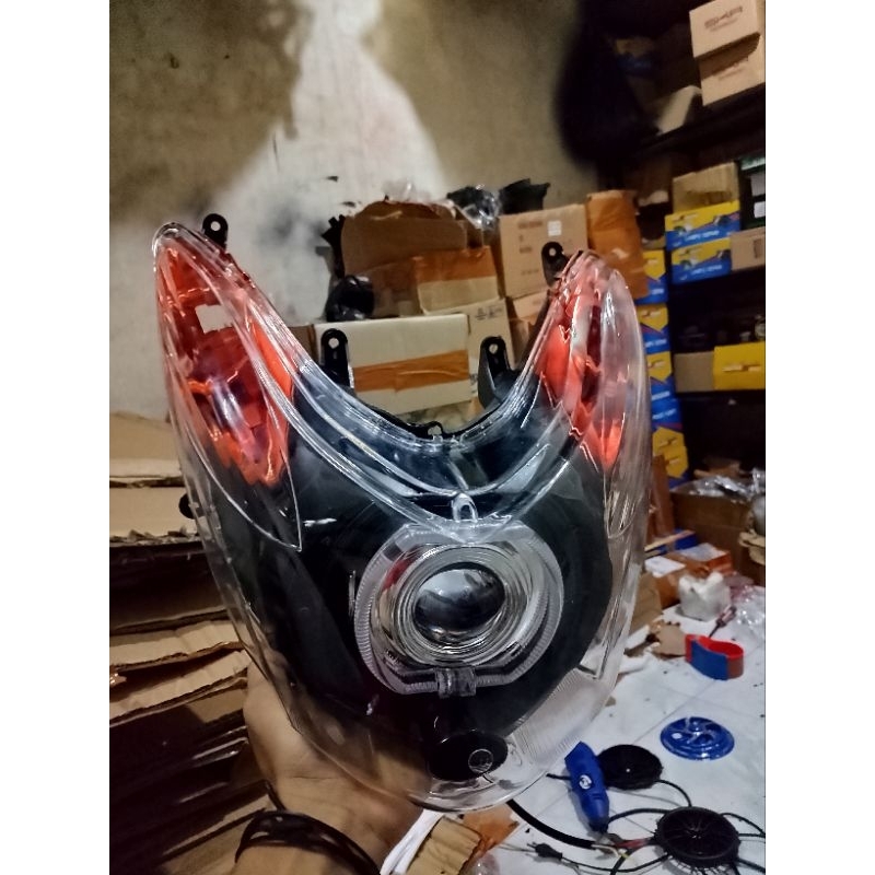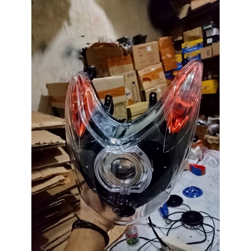 Headlamp Reflektor Lampu Depan Plus Mika Kaca Lampu Depan Mio Soul Karbu Lama Custom Hitam Oranye Plus Biled Ala Ala 4.5
