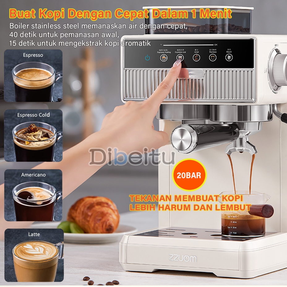 Mesin Kopi/Coffee Ginder/Espresso Coffee Maker Cold Brew 20Bar Tongkat Uap Pembuih Susu Profesional