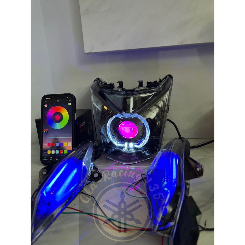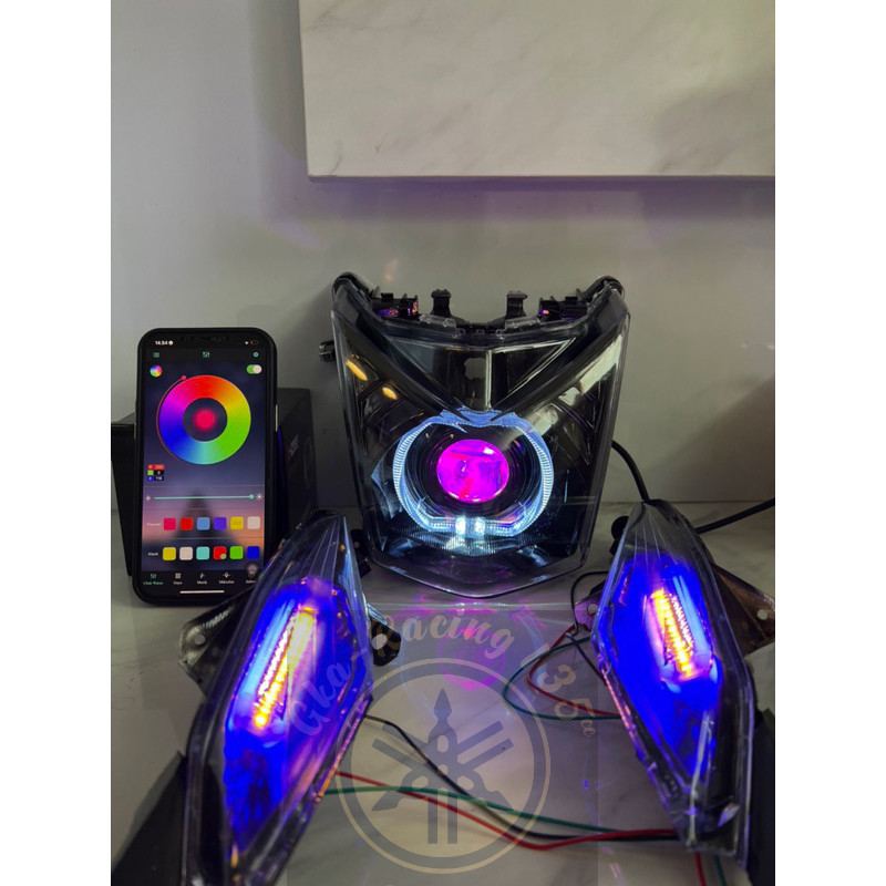 Lampu depan beAT fi custome biled billed devil RGB + sen Runing ganti warna via Hp