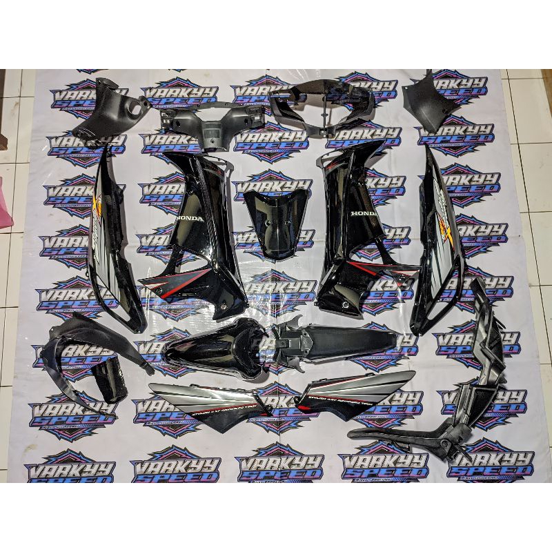 COVER FULL SETT BODY HALUS KASAR SUPRA X 125 OLD LAMA HITAM PLUS STRIPING