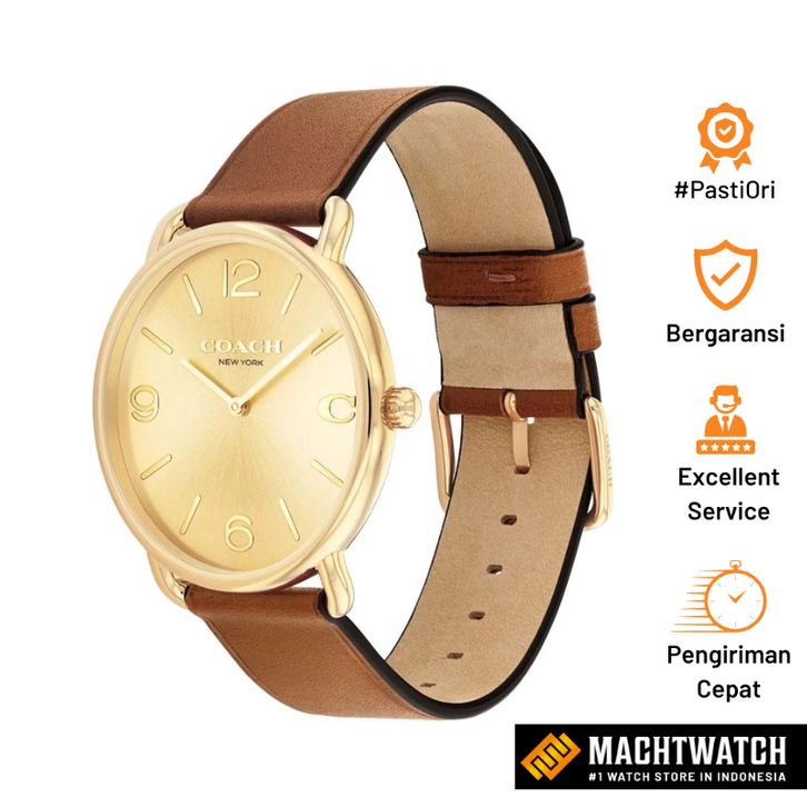 Jam Tangan Pria Coach Elliot 14602646 Men Champagne Dial Brown Leather Strap