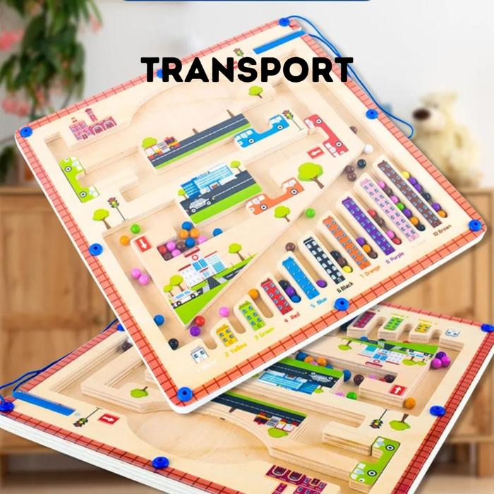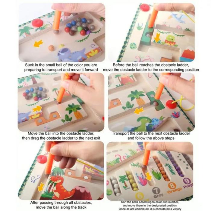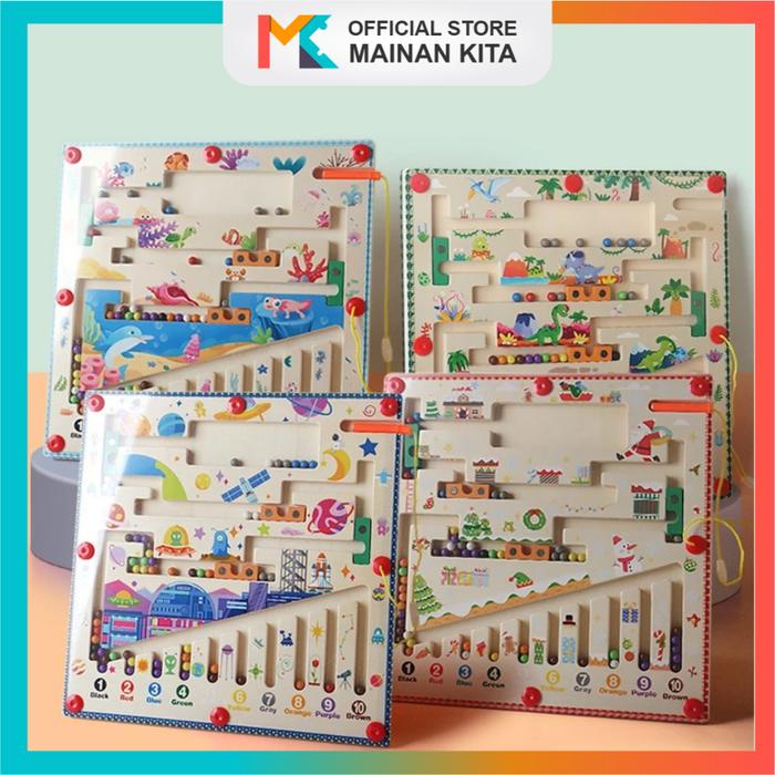 MK915 Mainan Edukasi Anak Wooden Color Classification Mazes Montessori Piglet Magnetic Bead Maze Board Toys Games