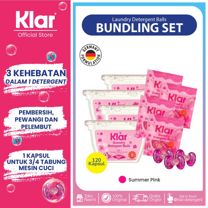 [PAKET BUNDLING 120 BALLS] Klar Detergent | 4 Box + 4 Sachets | Detergent Capsule | Detergent Balls