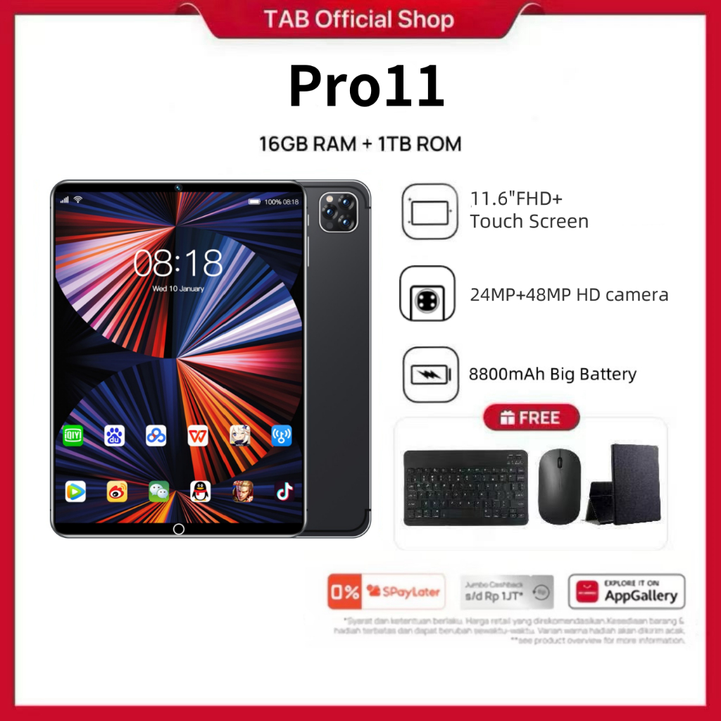 TABLET PRO11 16GB+512GB 11.6IN TABLET ANDROID WIFI 5G DUAL SIM HIBURAN DAN PEMBELAJARAN