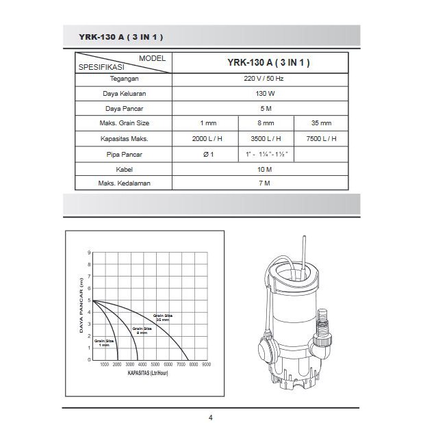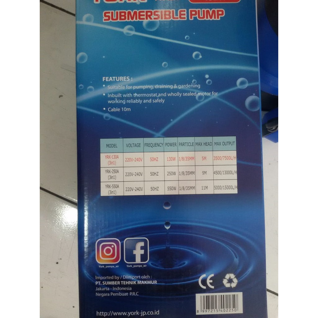 York YRK 130 A Pompa Celup Air Bersih Otomatis 130 watt | Sentral Pompa