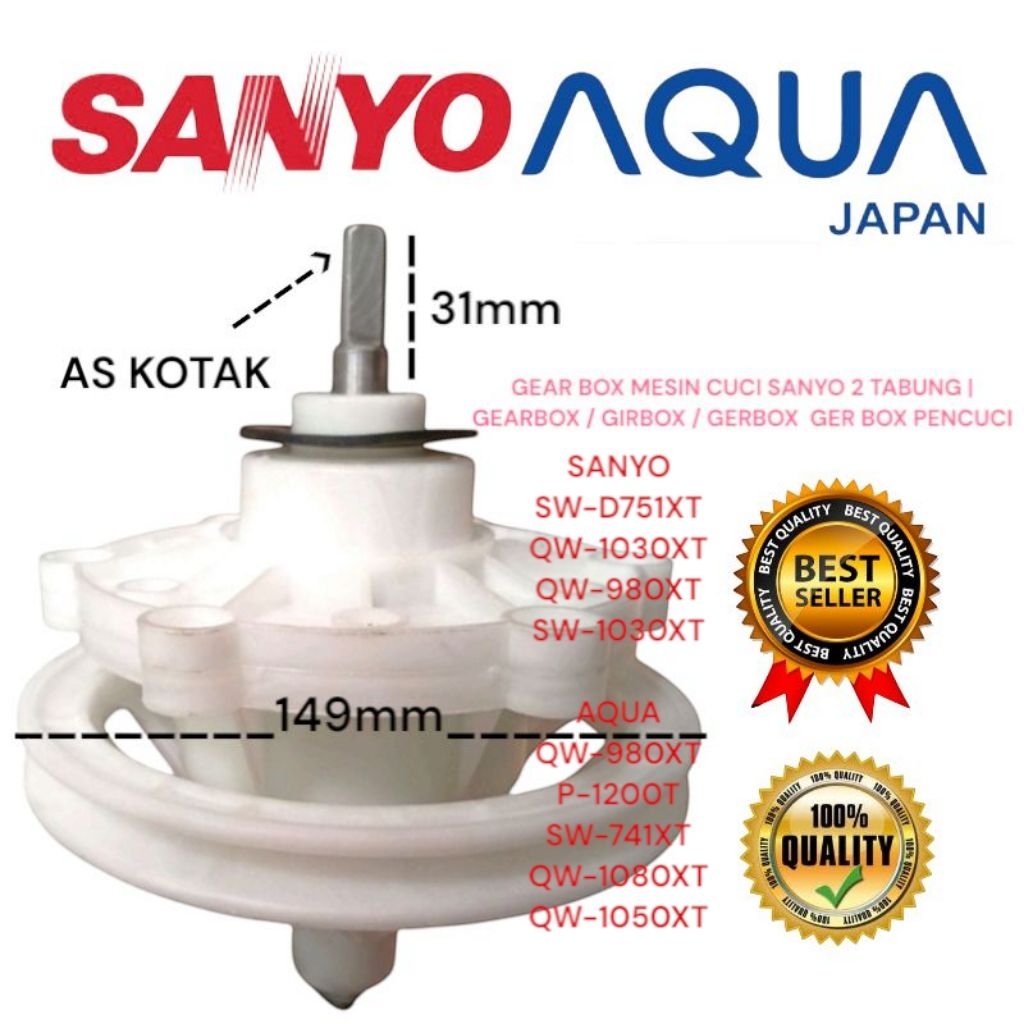 GEARBOX GIRBOX MESIN CUCI SANYO AQUA QW-980XT 2 TABUNG AS KOTAK | PULLY KECIL