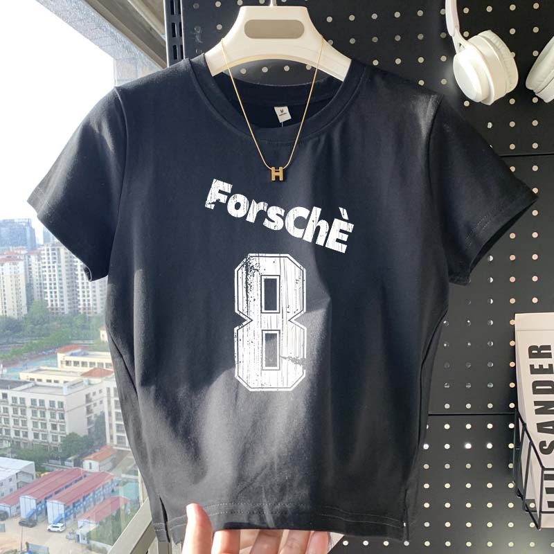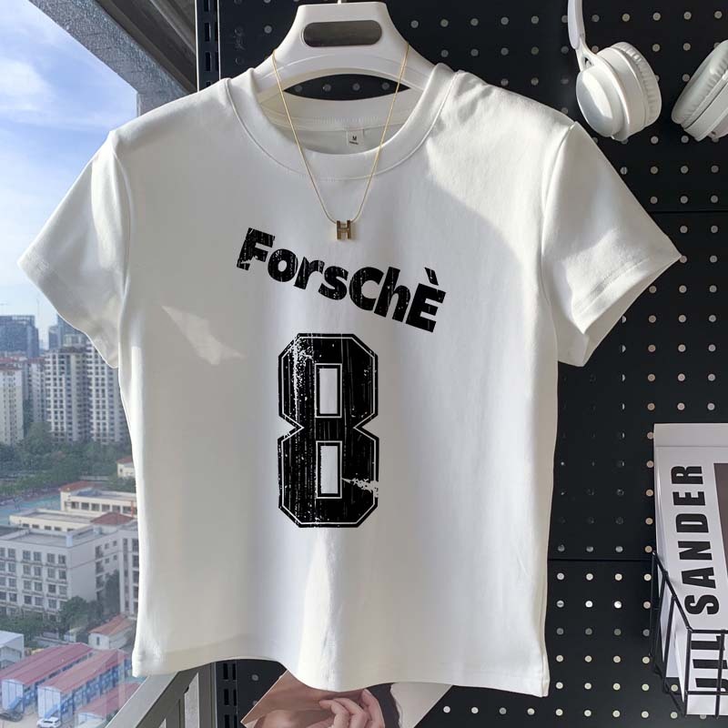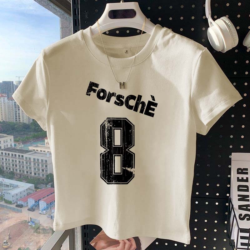 Peach Fashion Korean style fashion English letters and numbers 8 printing T-Shirt Crop Top Lengan Pendek Kaos Wanita Cro