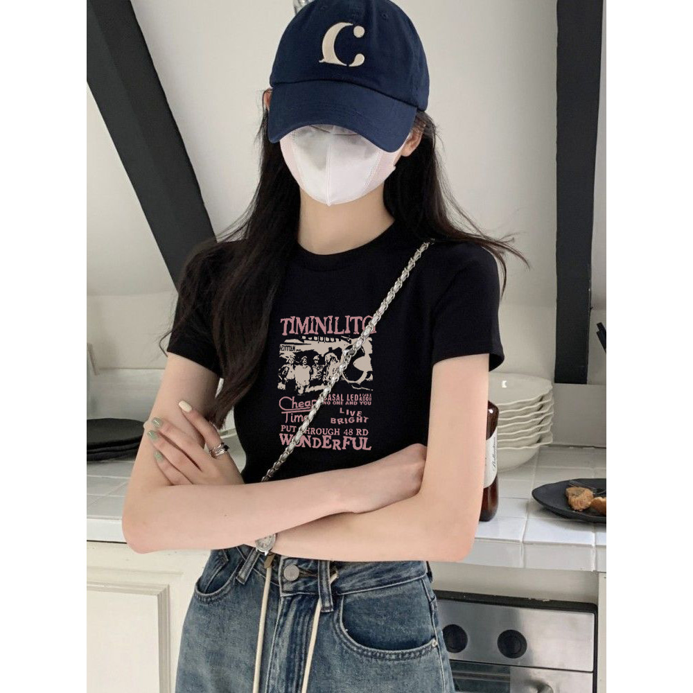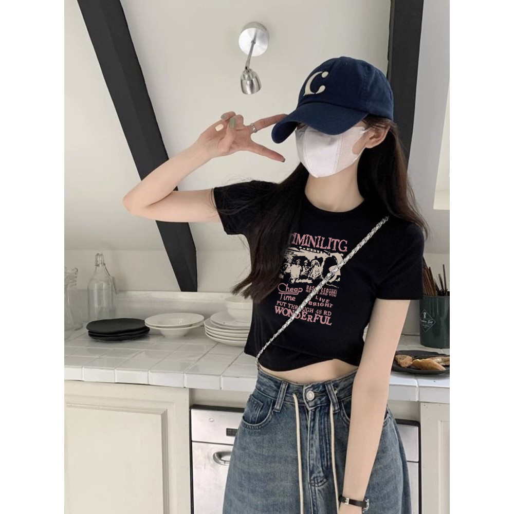 Misco Tshirt Kaos Wanita Crop Top Lengan Pendek Fashion Street Style Characters Print Baju Atasan Wanita Terbaru 2025 Ke