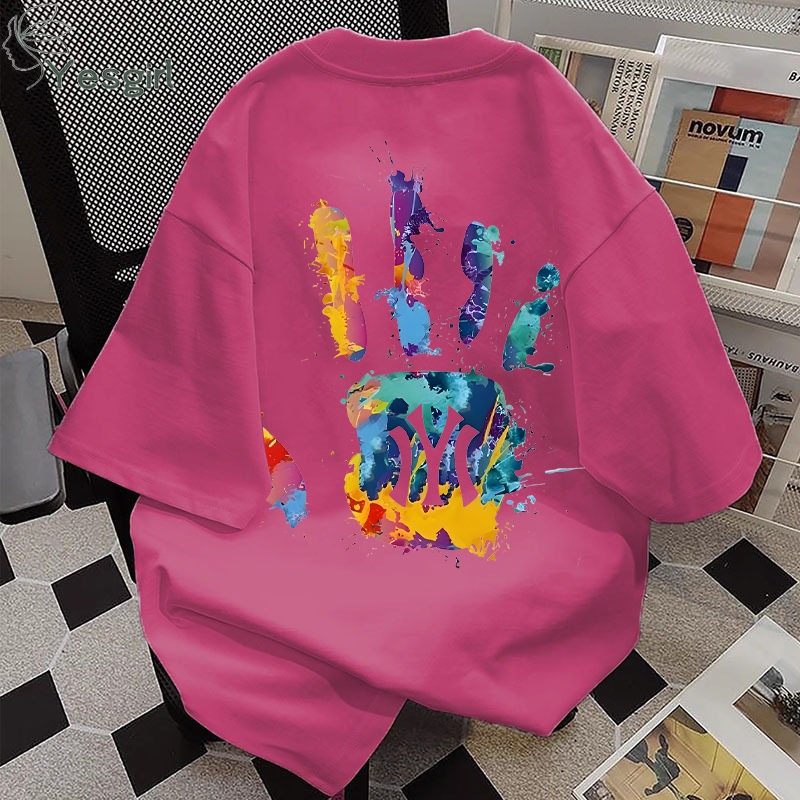 Yesgirl Korea style Grafiti telapak tangan print kaos kasual longgar| Kaos Oversize Wanita | Fashion korean style baju k