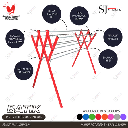 Jemuran Baju Stainless Steel Jumbo Lipat Aluminium Portable 180 Cm Anti Karat Kuat Dan Tahan Lama - Lipat Tulip Batik