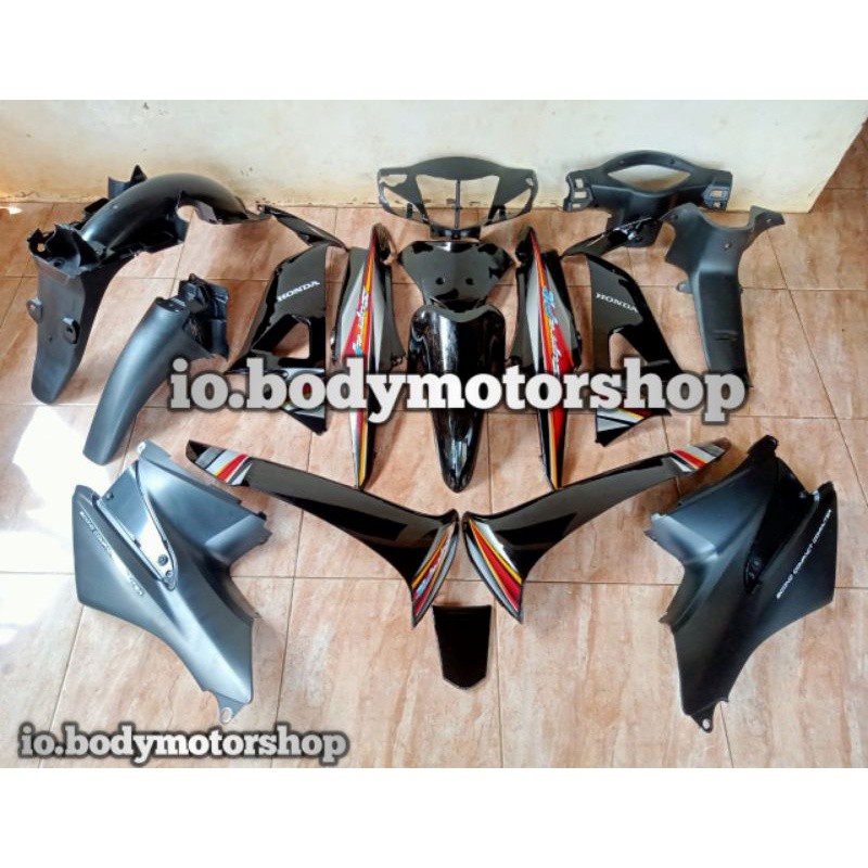 cover body bodi fullset halus dan kasar Honda Supra fit new hitam plus lampu lengkap
