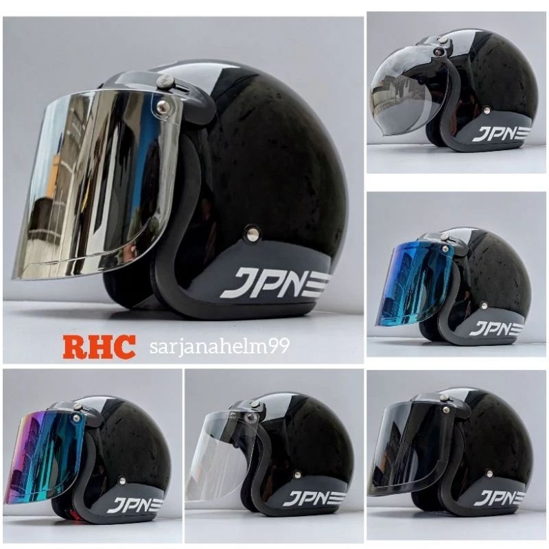 Helm Bogo Jpn Retro Dewasa Full Leher Warna Hitam Glossy Berkualitas Original Tahan Banting Termurah Terbaru Terlaris
