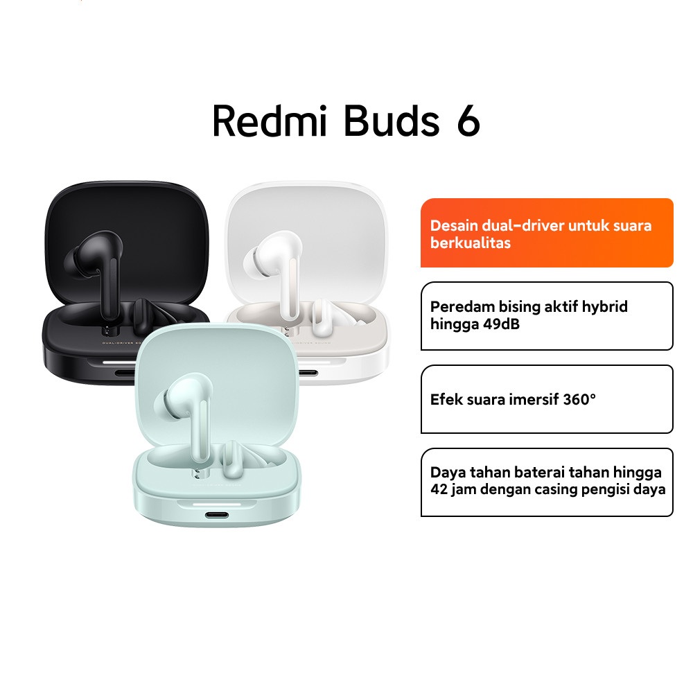 [Mall] Xiaomi Redmi Buds 6 | Desain akustik dual-driver | Peredam bising hingga 49 dB | efek suara imersif 360° | Batera