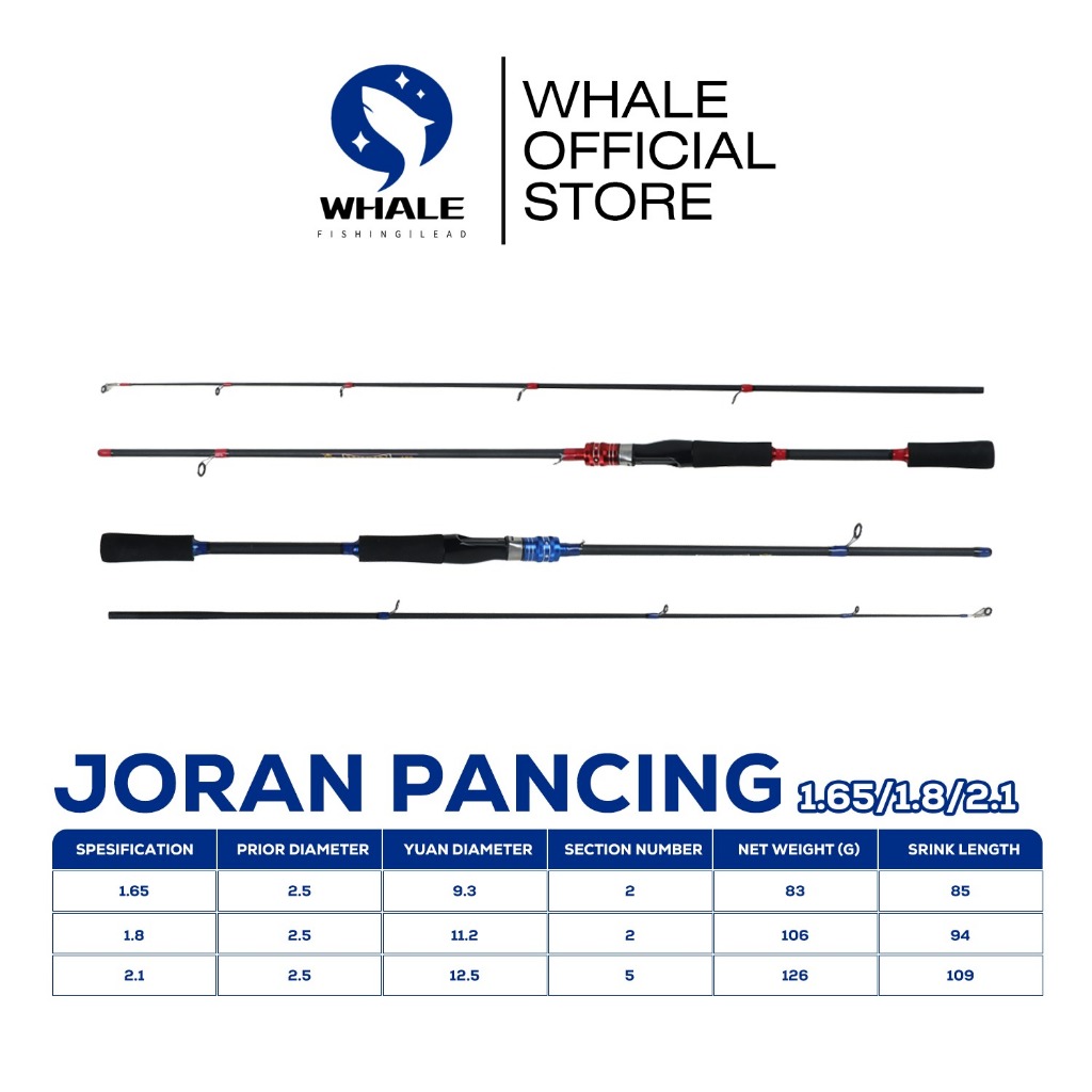 WHALE Joran Pancing 1.65m/1.8m/2.1m Fishing Rod Carbon Fiber Joran Pancing Spinning Fishing Pole 2 Section joran fiber murah joran fishing of catch