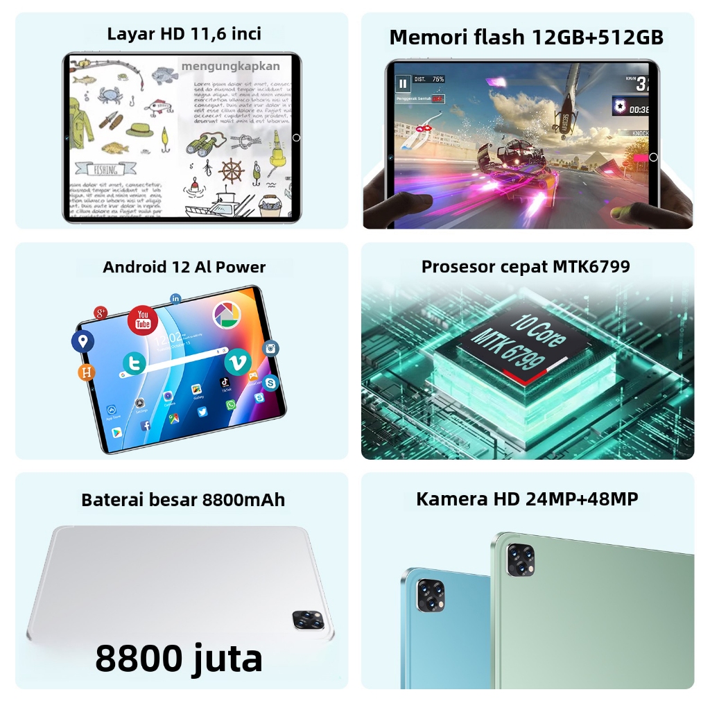 TABLET PRO11 16GB+512GB 11.6IN TABLET ANDROID WIFI 5G DUAL SIM HIBURAN DAN PEMBELAJARAN