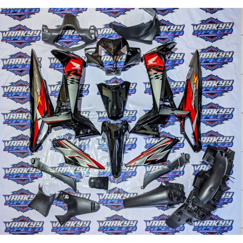 Full set cover body halus dan kasar Honda Supra X 125 Batman / Supra X 125 R 2008 - 2013 Hitam TERLARIS
