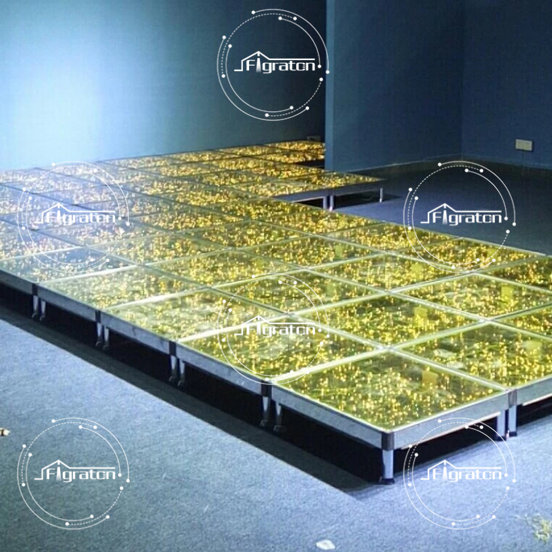 Lampu Kaca Panggung Lantai Kaca Tempered Glass 4 Pcs/Set Stage Lighting LED Starlit Dance And Wedding Floor Pernikahan D