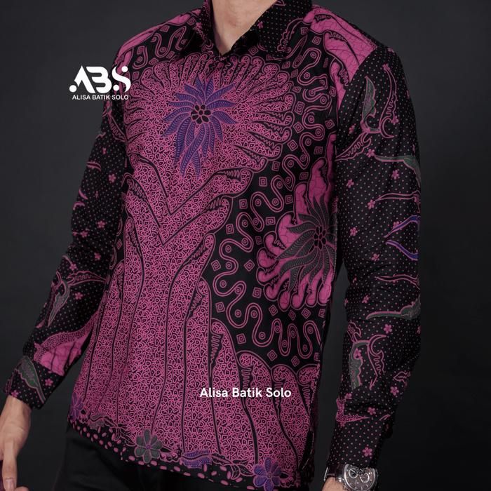 ALISA BATIK SOLO | Motif Hitam Ungu Kemeja Batik Atasan Pria Kain Katun Solo Sragenan Lengan Tangan Panjang M0DEern Pre