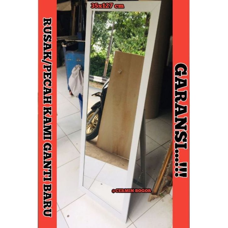 Standing Mirror / Cermin Berdiri Full body / Bisa Gantung Ukuran 35 x 127 Cm Full Bingkai - Putih
