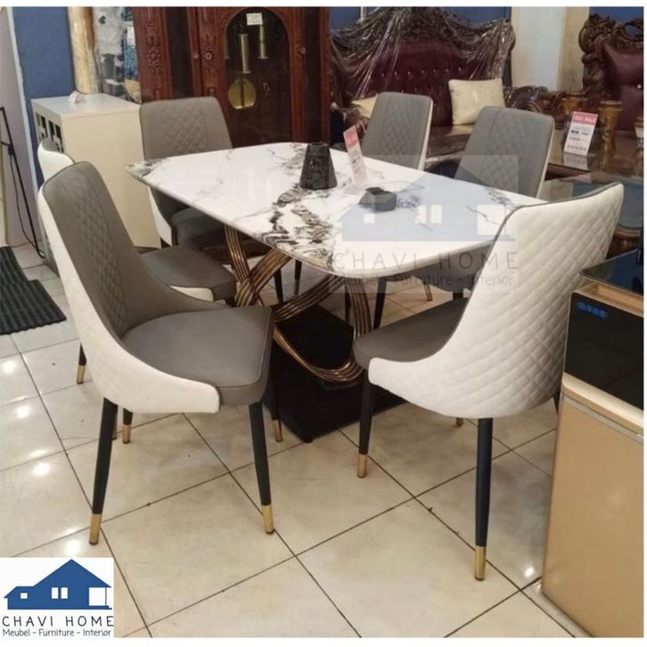 Set Meja Makan Marmer Marble Import Kualitas Dengan 6 Kursi
