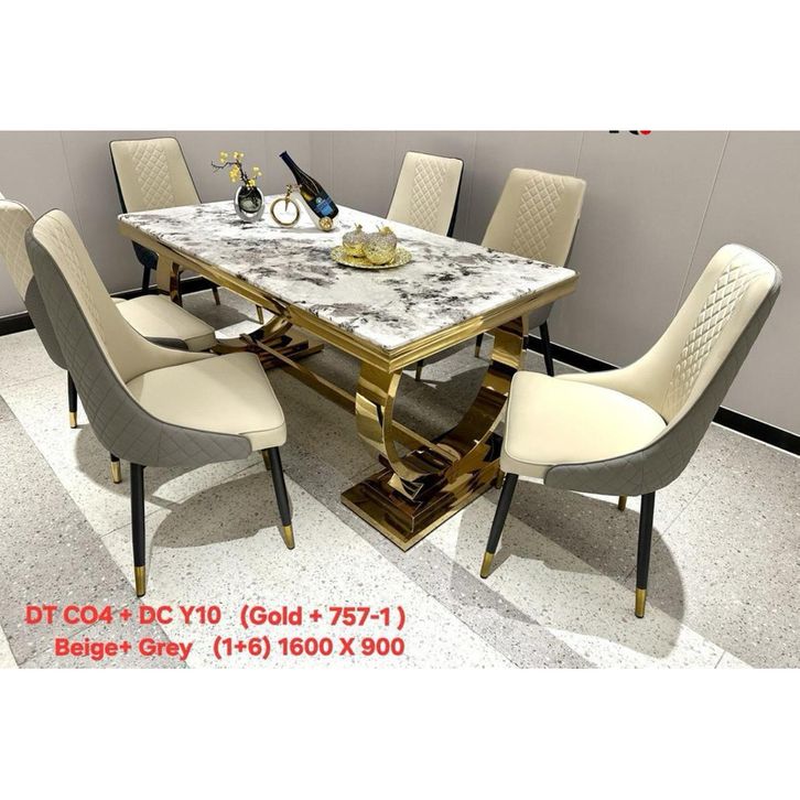Meja Makan Oxy 6 Kursi White Meja Kaki Gold Full