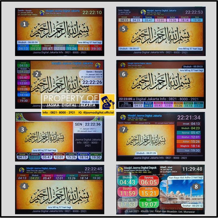 Jasma Versi Standart Jam Waktu Sholat Masjid TV LED Otomatis Digital