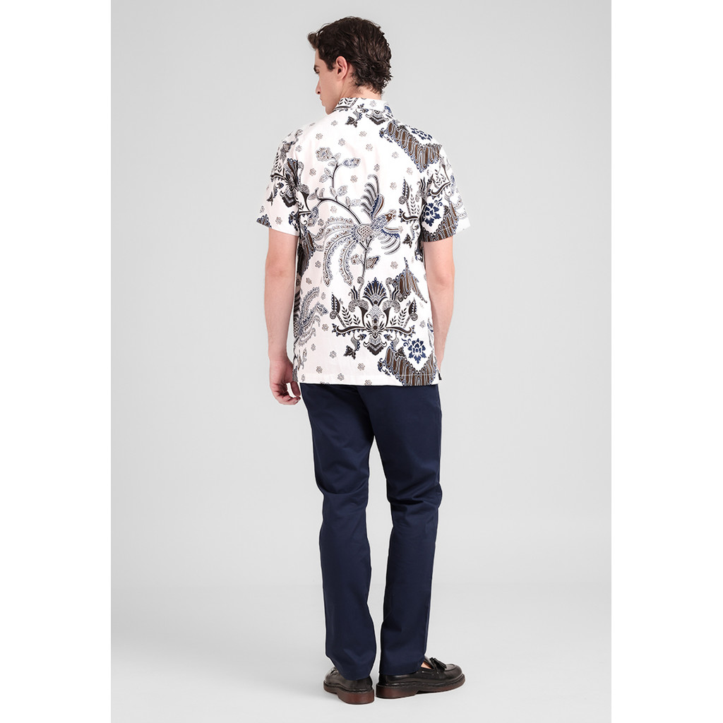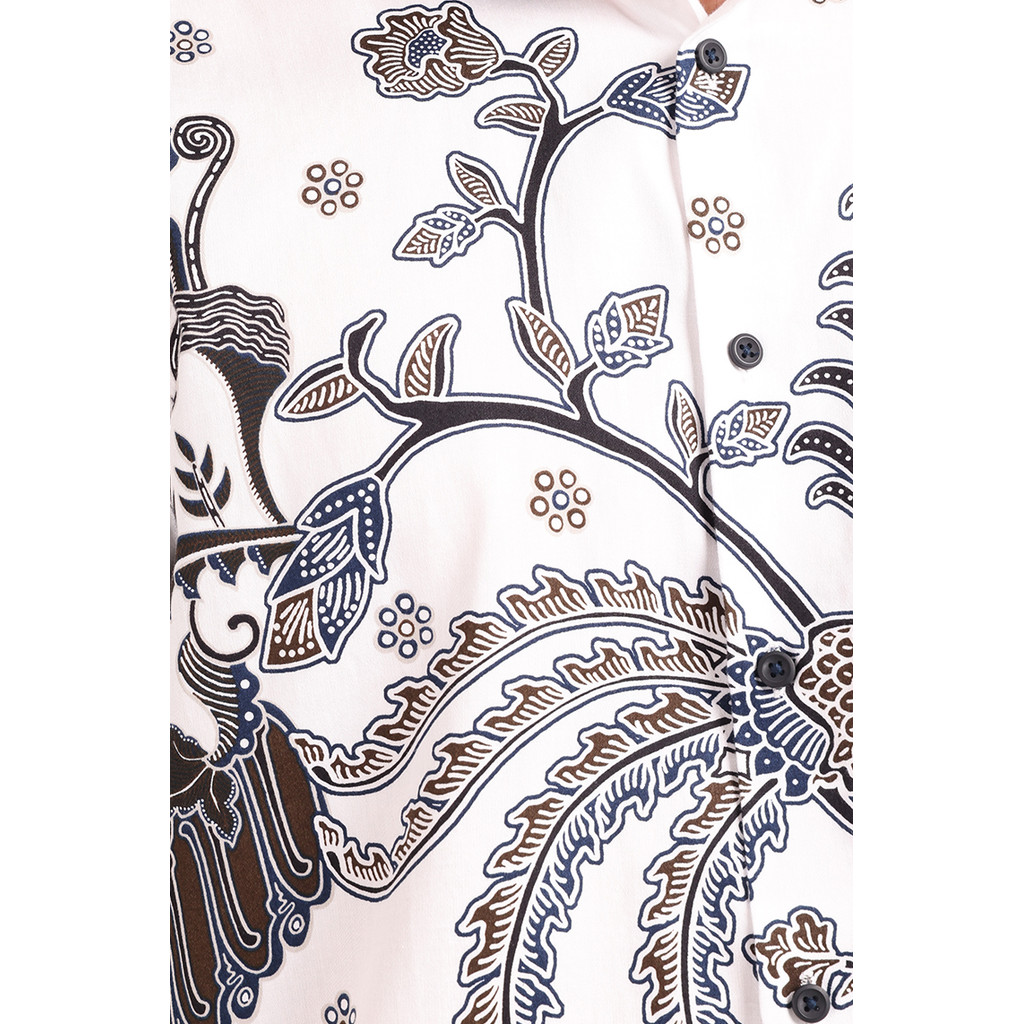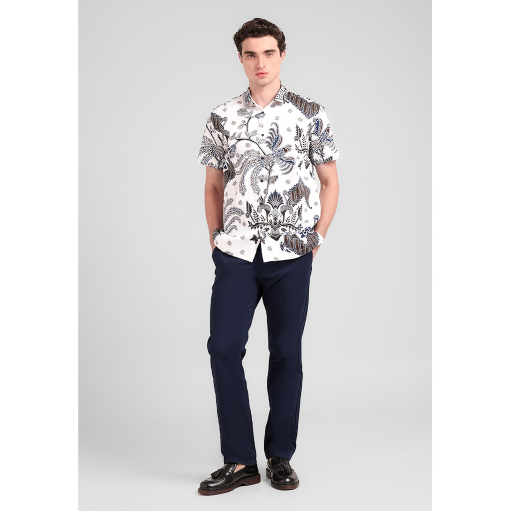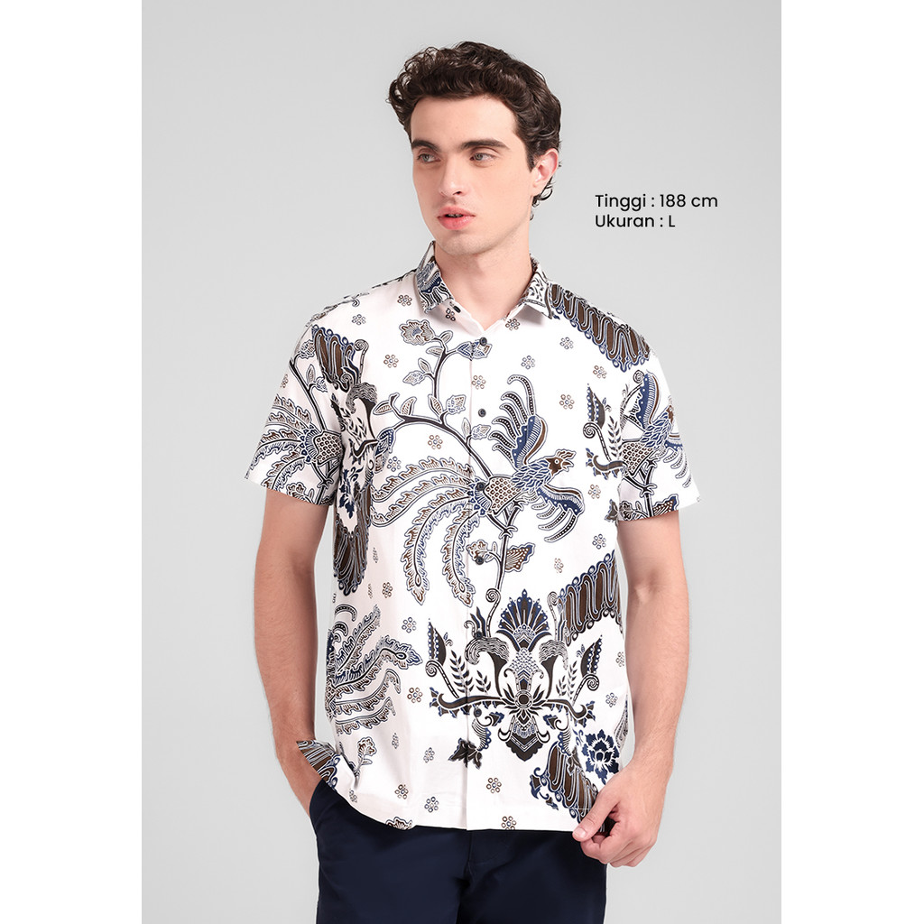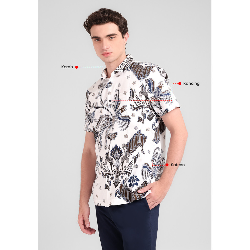 Manzone Kemeja Batik Pria Slimfit Lengan Pendek Pandarka White Baju Kondangan Katun Modern Fashion Terbaru Kekinian