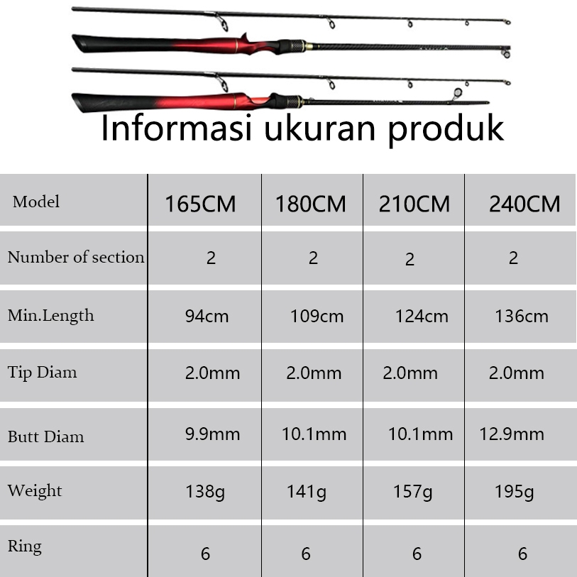 【COnn】Joran Pancing 1.65M-2.1M Carbon Joran Baitcasting Portabel Joran Spinning Joran Pancing Putar Umpan Karbon M Power Joran Pancing merah