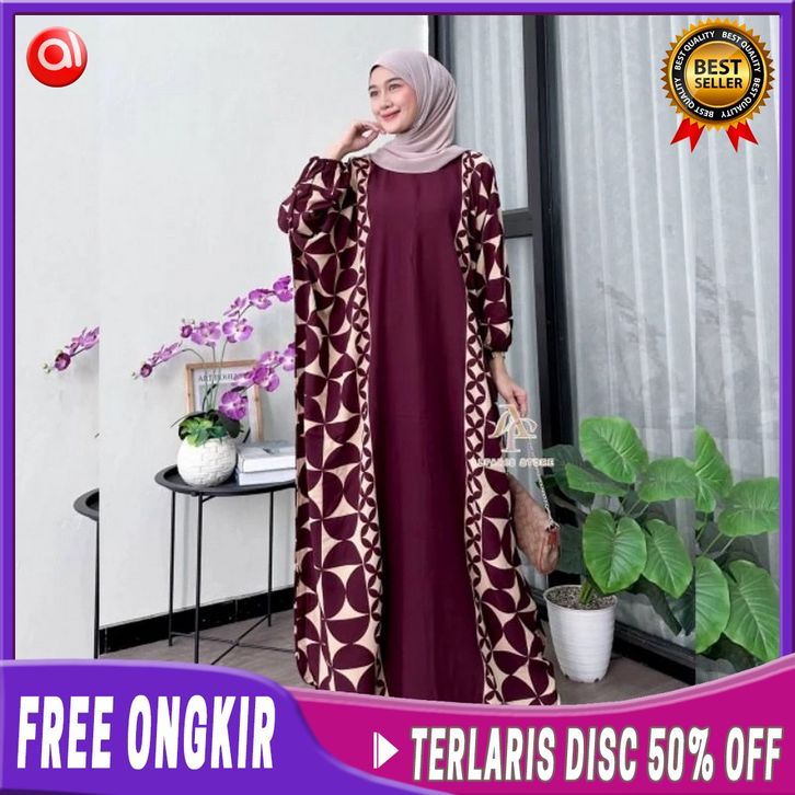 Kaftan Motif Claudy Ld 180 Cm Kaftan Panjang Muslim Wanita Nyaman Daster Kaftan Terbaru Busui Adem