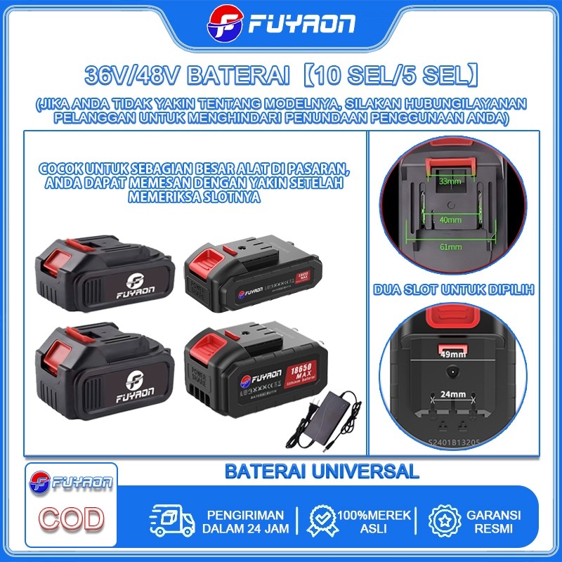 FUYAON【+Pengiriman instan】New Baterai Litium Li-ion Batteries Aksesori for Lithium Chainsaw, Kunci Pas Listrik, Mesin