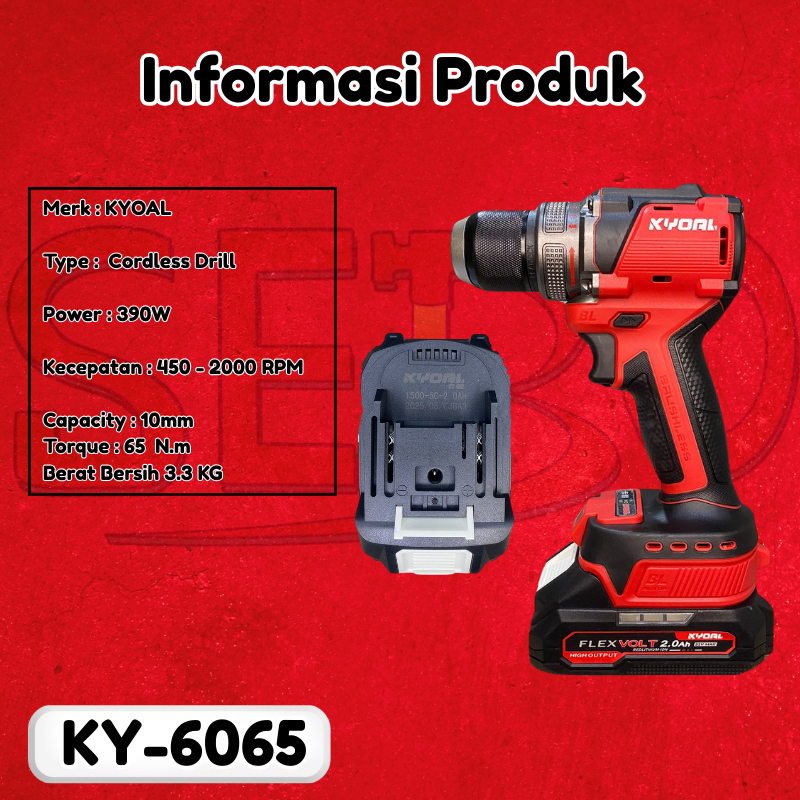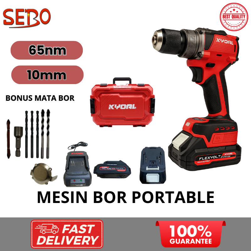 KYOAL Mesin Bor Impact Cordles Portable 2Baterai 21volt Mesin Bor Cas Brushless 10mm - KY-6065