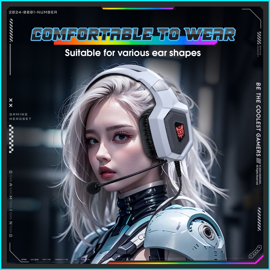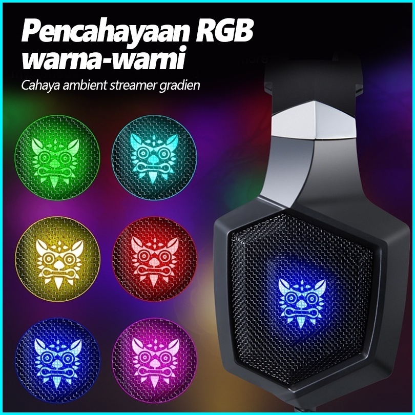 Onikuma K8 Noise Cancelling Headphone Gaming Super Bass Headset Gamedengan Mikrofon Earphone Rgb Led Cocok Untuk Ponsel