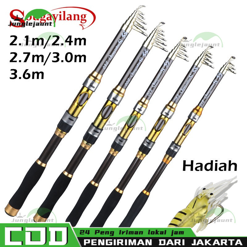 Sougayilang Joran Pangcing 2.1m-3.6m Carbon Teleskopik Danau Laut 210/240/270/300/360 Pangcingan