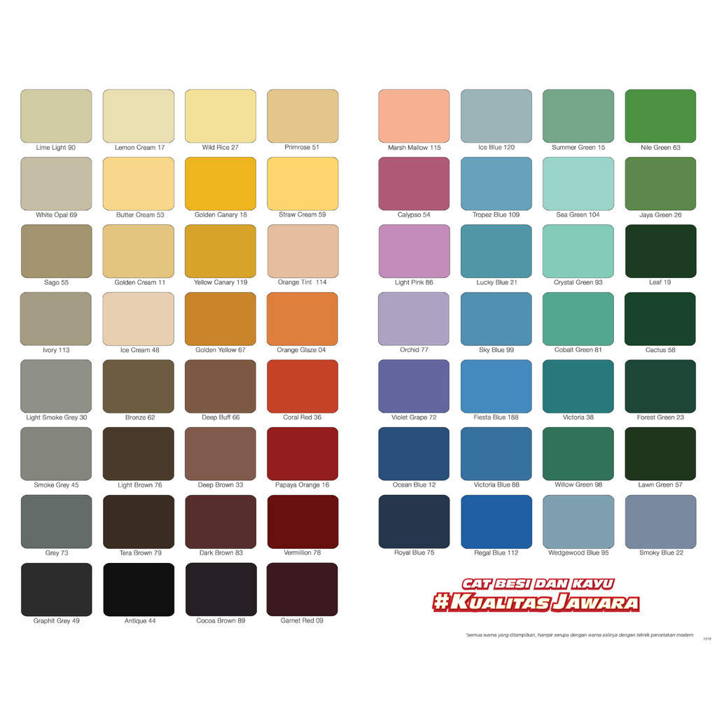 Golden Canary, Deep Brown, Nile Green, Grey, Vermillon, Dark Brown, Light Pink, Regal Blue, BLACK GLOSY, WHITE GLOSY, BLACK DOFF, WHITE DOFF