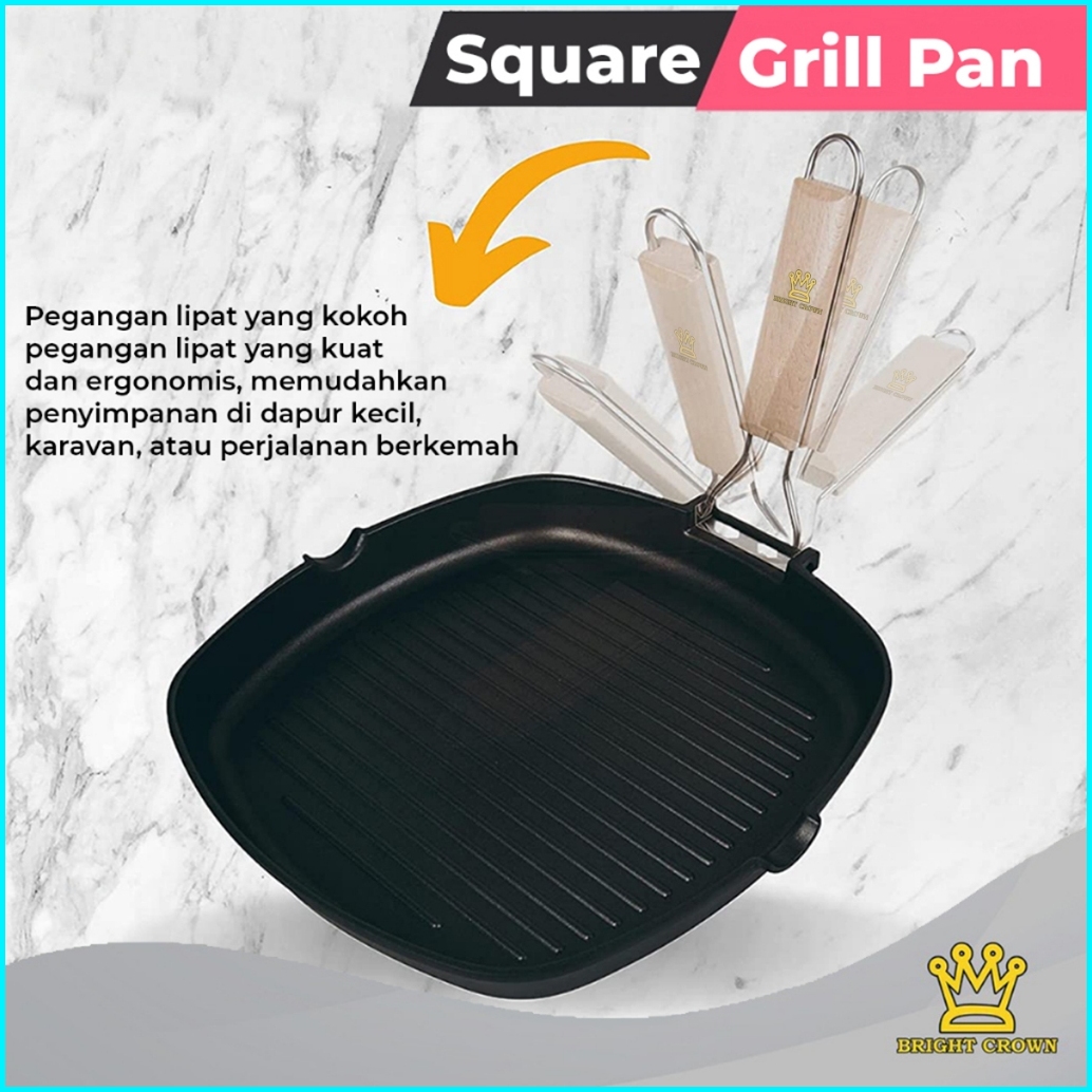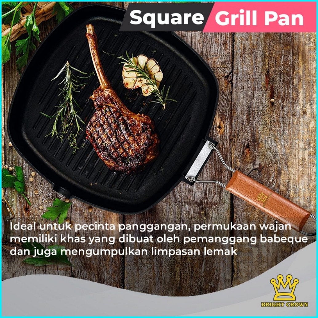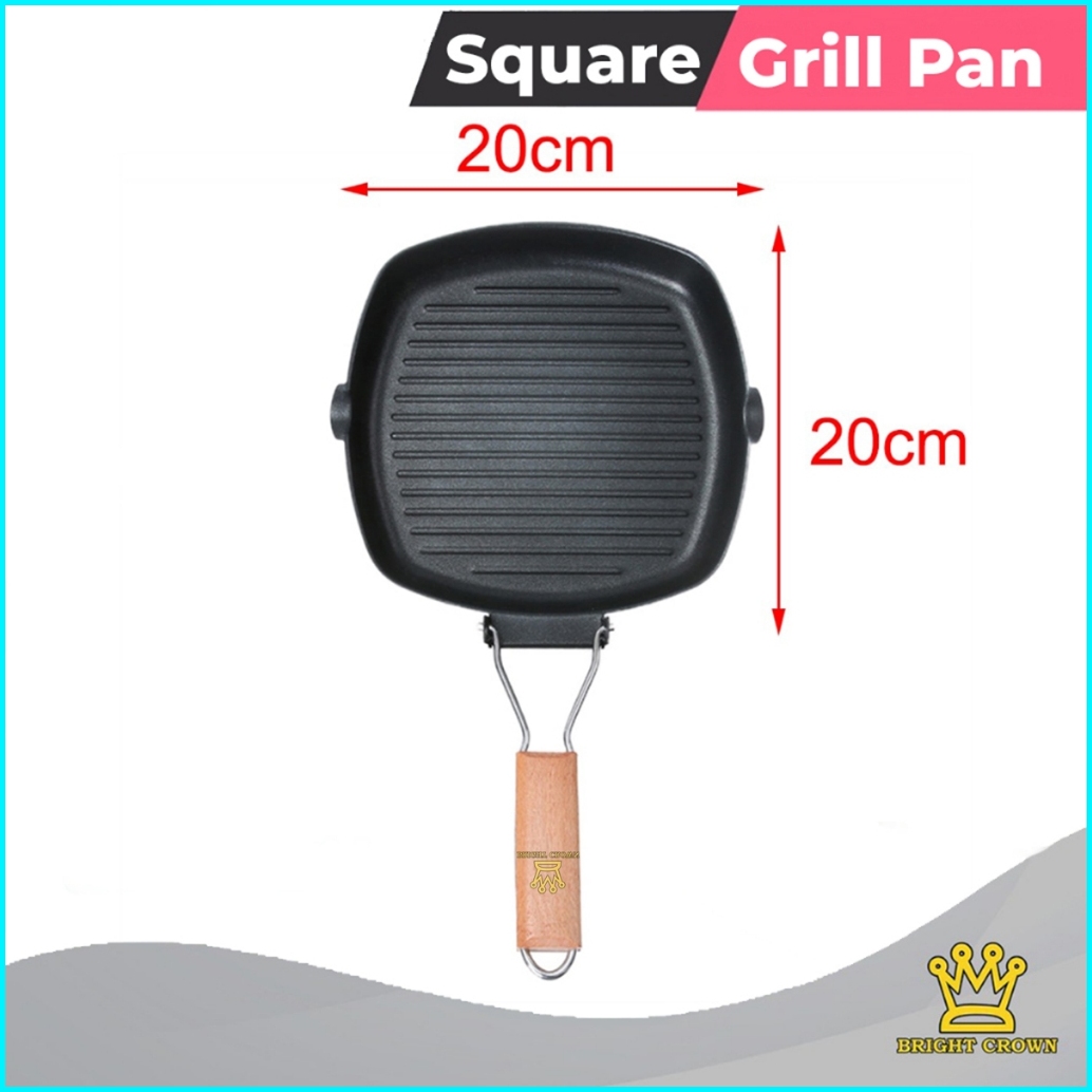 Bright Crown 20cm Panci Panggang Bbq Square Grill Pan Bbq Panggangan Steak Anti Lengket Premium 20cm