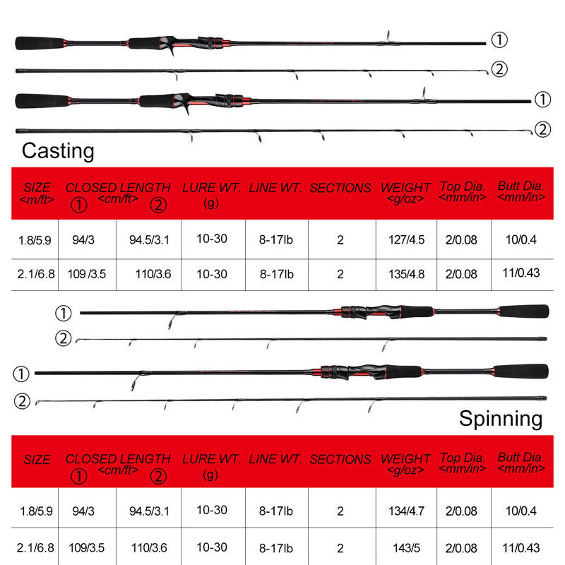 MUXI Joran Pancing Carbon Sutet 2 Bagian Tongkat Pancing Putar/Casting UL Power 1.8M/2.1M Untuk Air Tawar Dan Laut