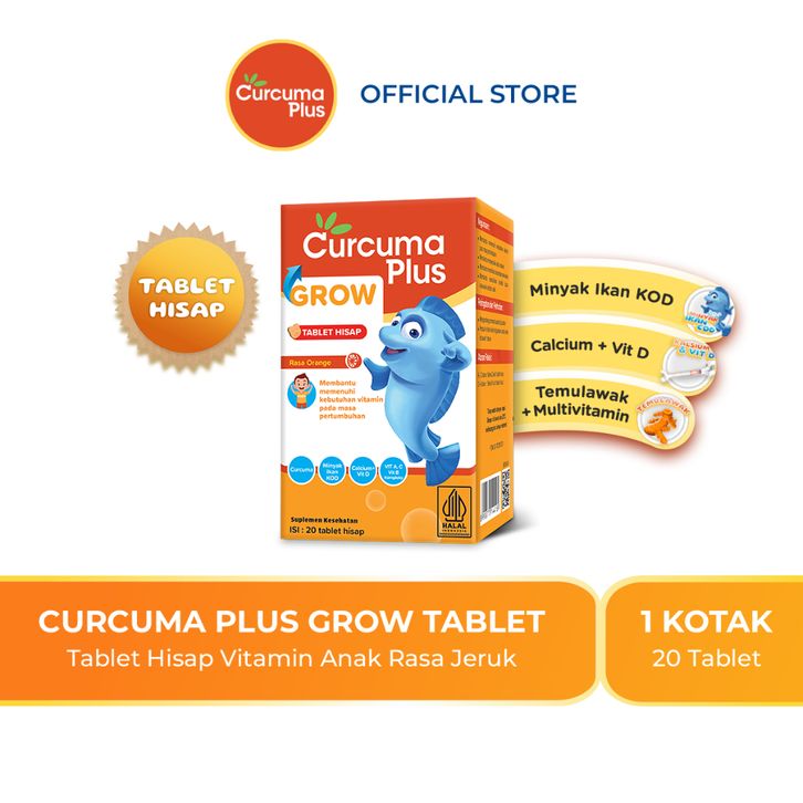 Curcuma Plus Grow Vitamin Tablet Hisap Membantu Pada Masa Pertumbuhan & Perkembangan Anak Rasa Jeruk @20 Tablet
