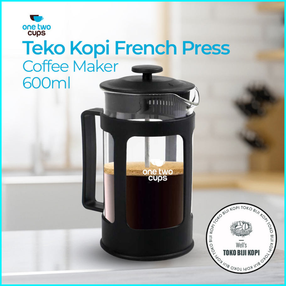 French Press 600 Ml Hitam Coffee Plunger Kaca Filter Alat Seduh Kopi