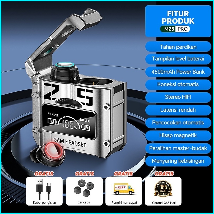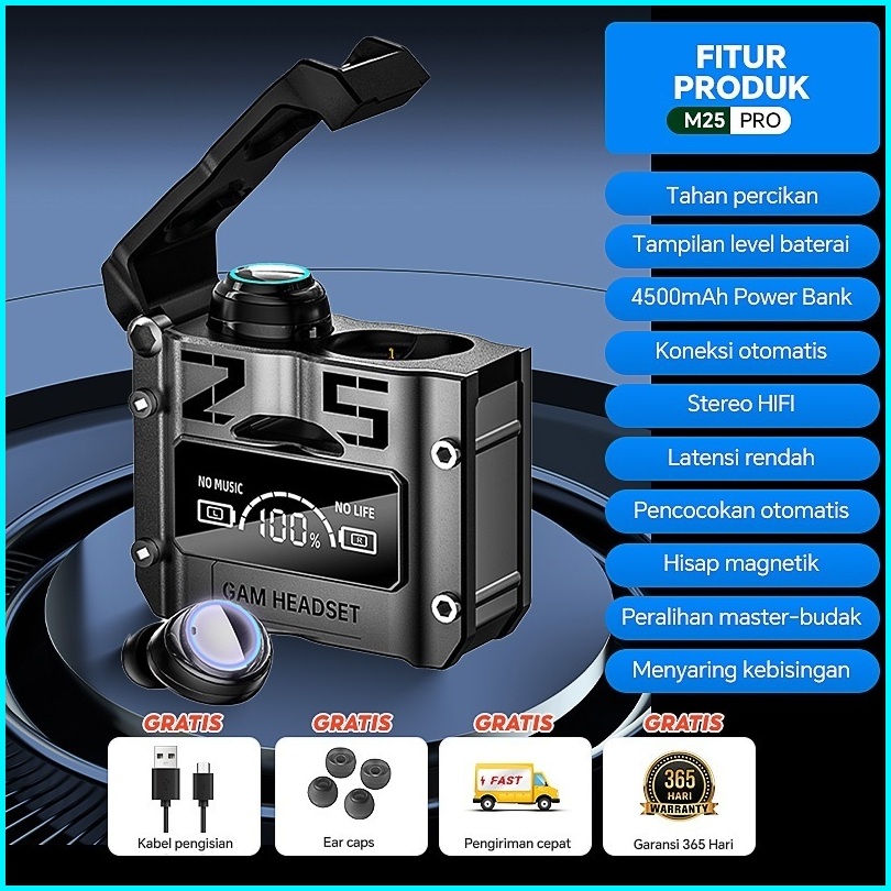 Tws M25 Headset Bluetooth Gaming Earphone Bluetooth Wireless Bass Headphone Bluetooth 5.3 Full Bass