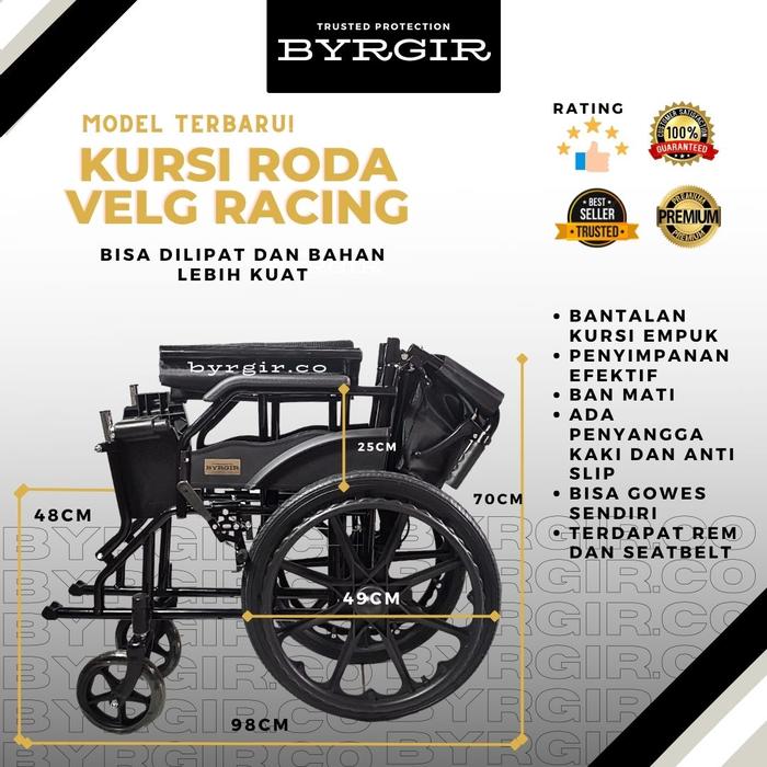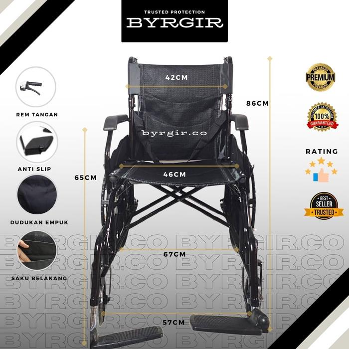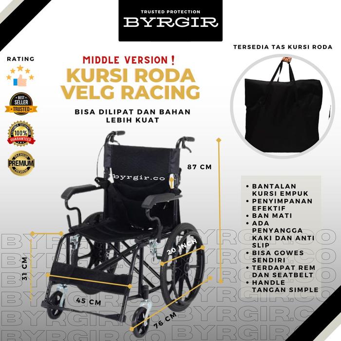 Kursi Roda Lipat Travel Traveling Wheelchair Foldable Wheel Chair Untuk Lansia Haji Umroh - Middle Version, +Tas
