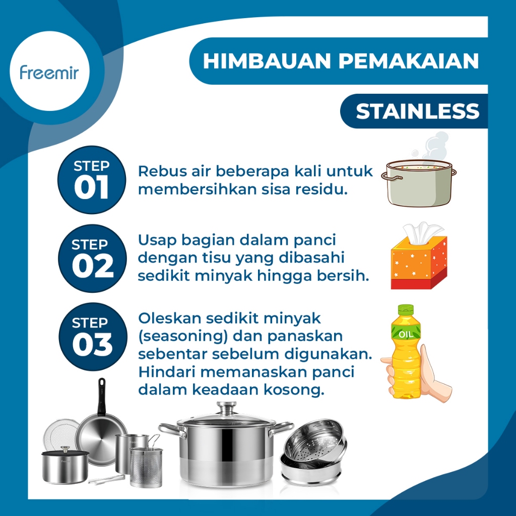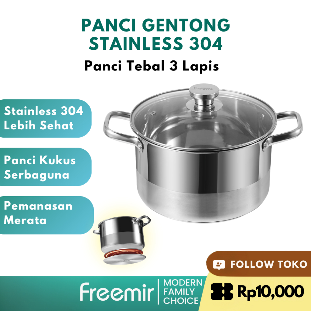 Freemir Panci Stainless 26cm 5L Stainless Steel 304 1 Tingkat 0-Coating Lebih Sehat Anti Karat