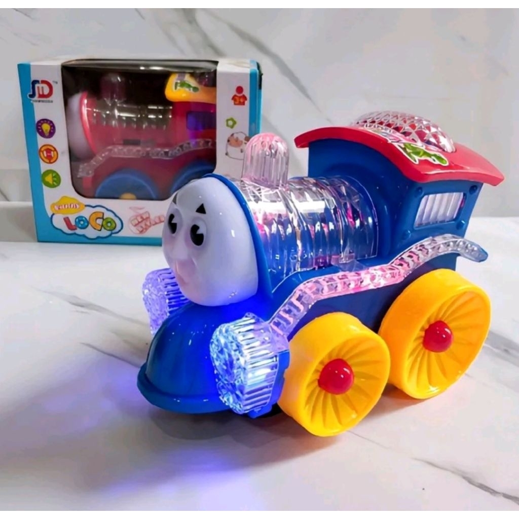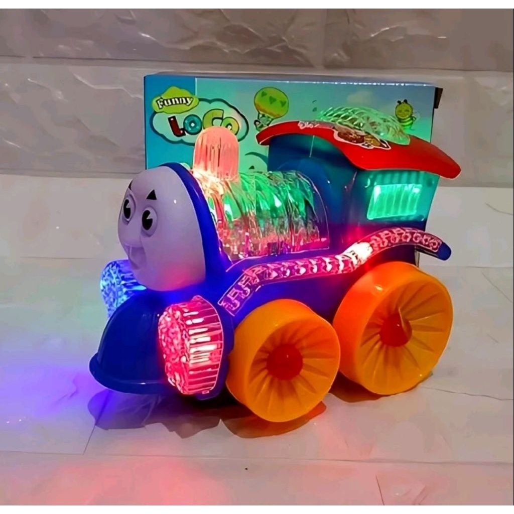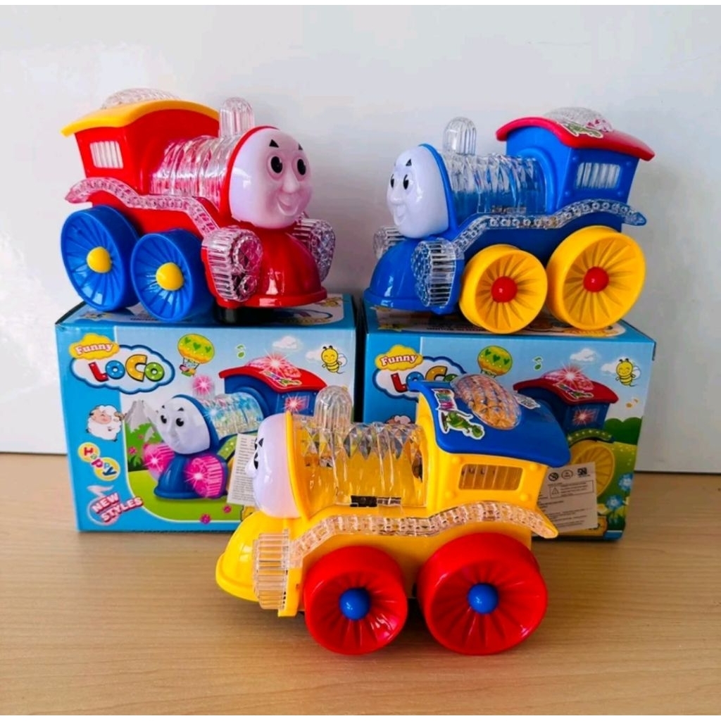 Mainan kereta funny Loco bisa jalan dan bunyi Nyala Train Lampu