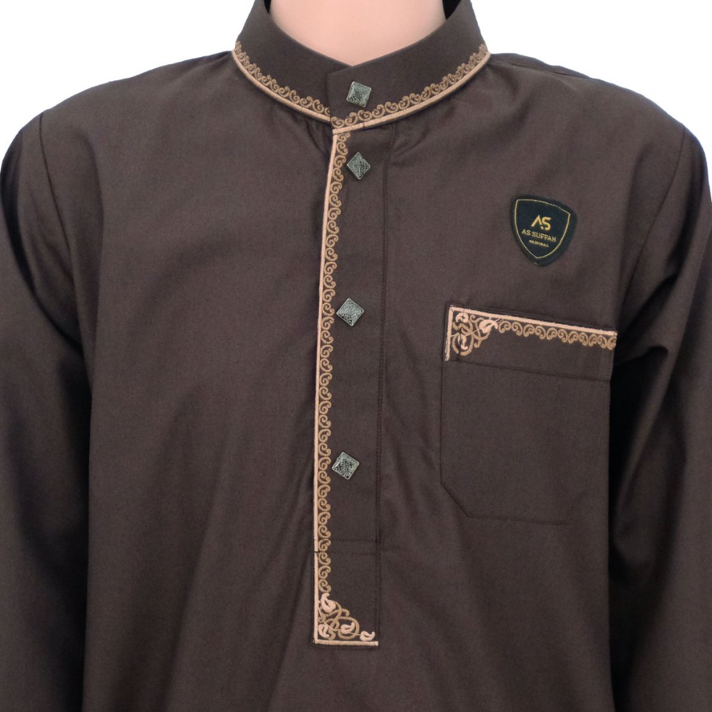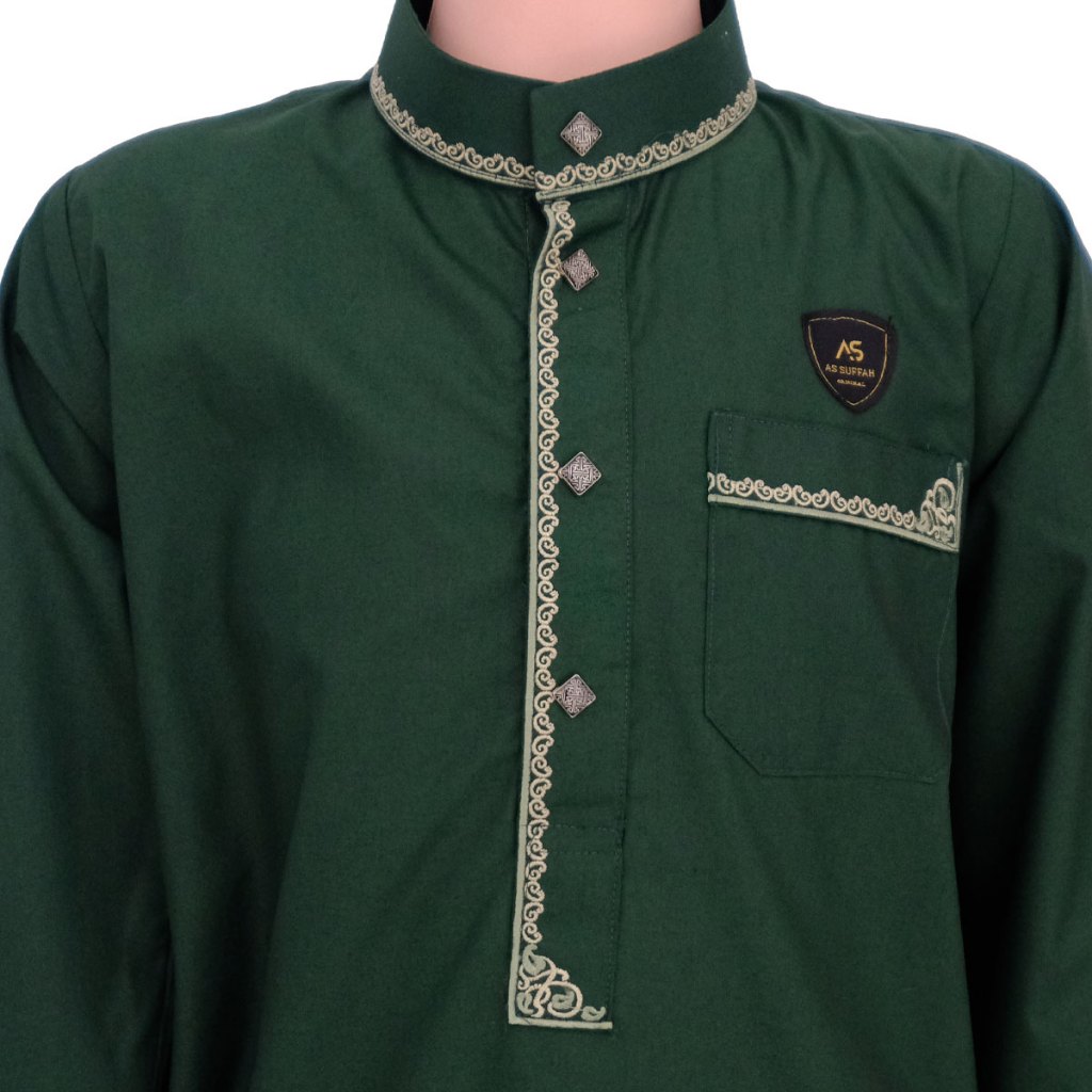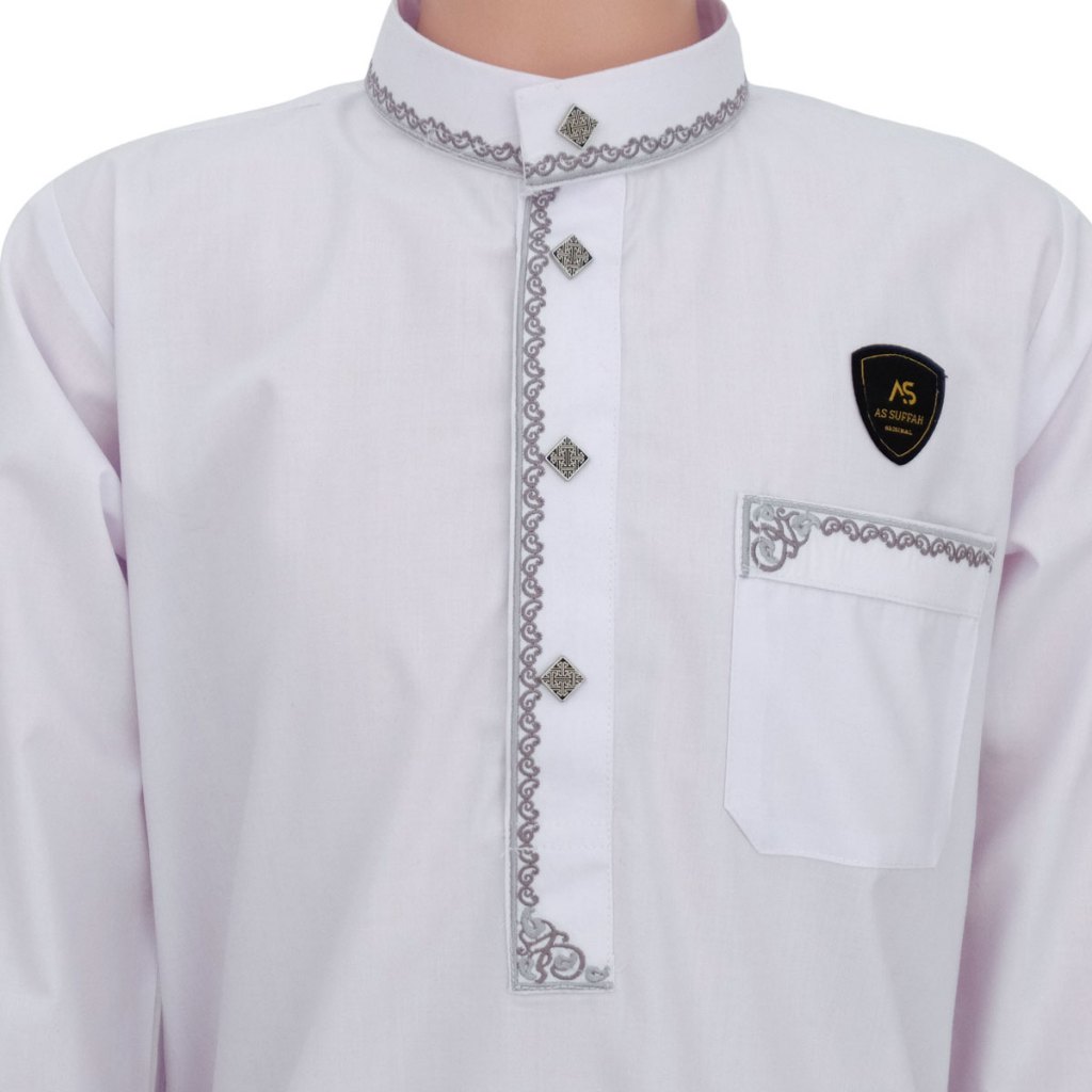 Jubah Bordir Anak Laki Laki 9-16 Tahun Kancing Import Jubah Motif Harmain Fathan Lembut Adem Berkualitas Terbaru murah