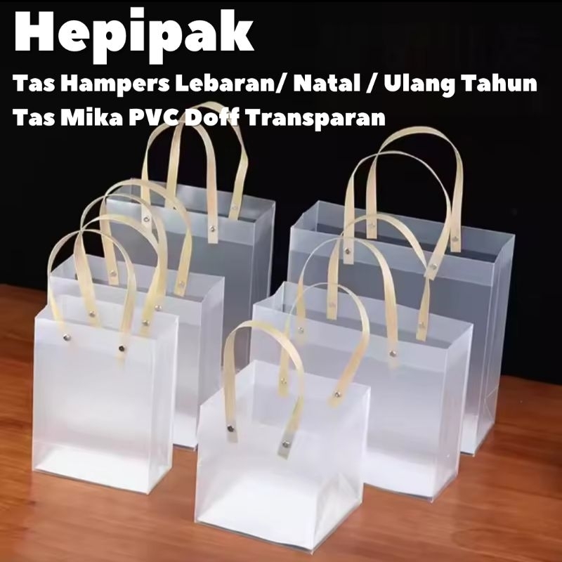 (10 Pcs) Tas Hampers Souvenir Doff Transparan / Goodie Bag Ulang Tahun Lebaran Imlek Natal Premium