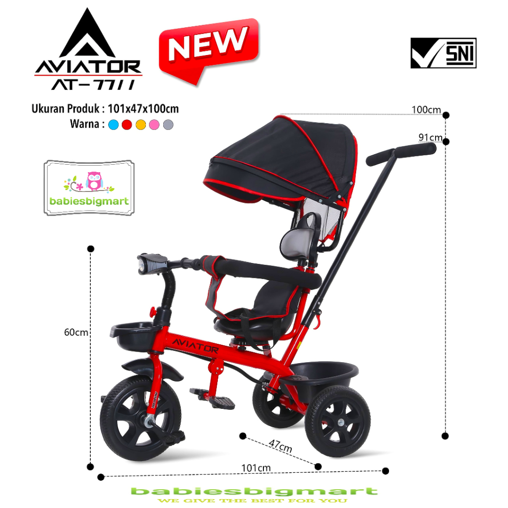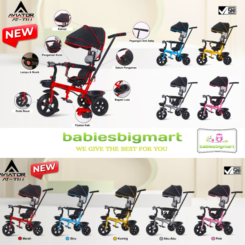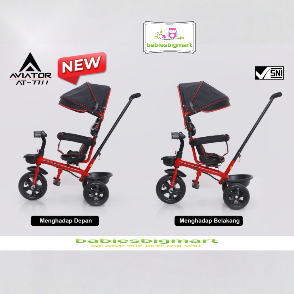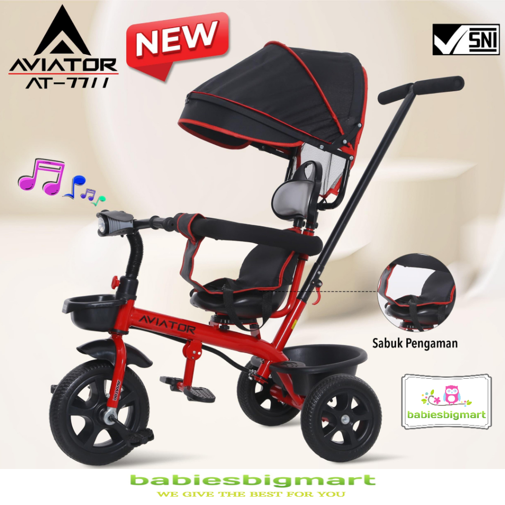 Sepeda Anak Roda 3 Tiga AVIATOR Tricycle AT 7711 Lampu Musik Kursi putar