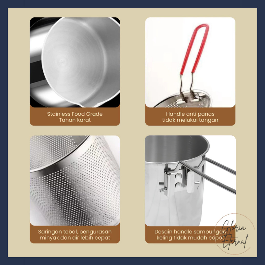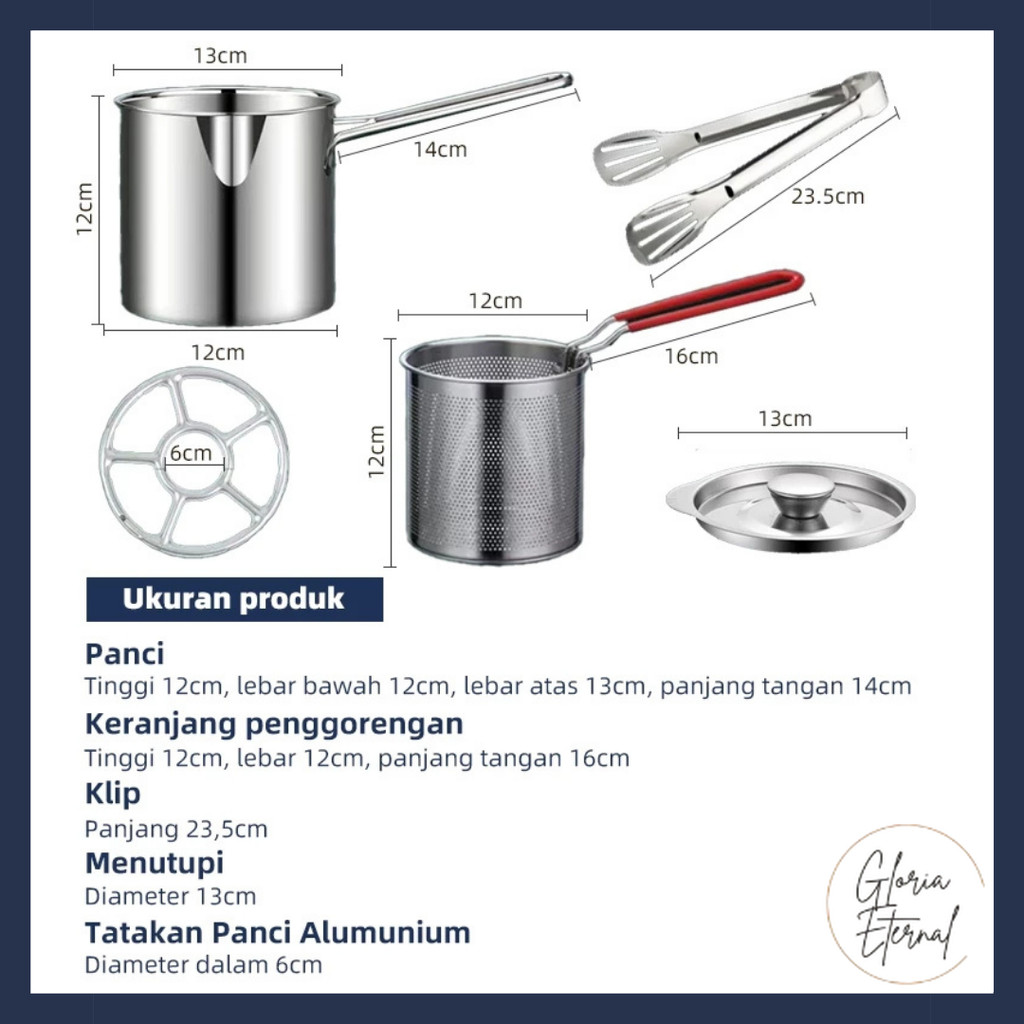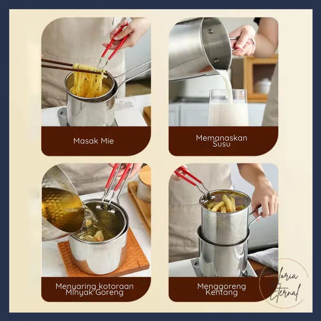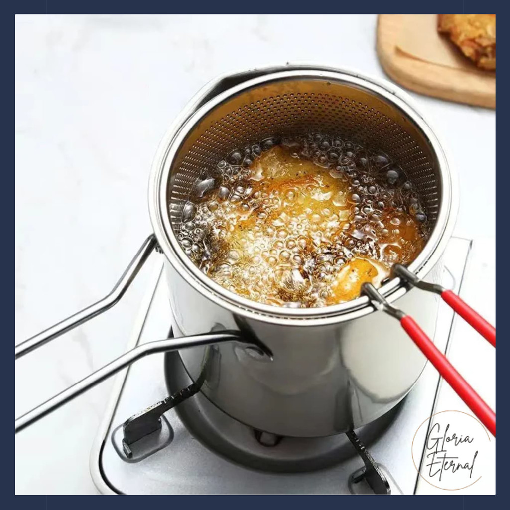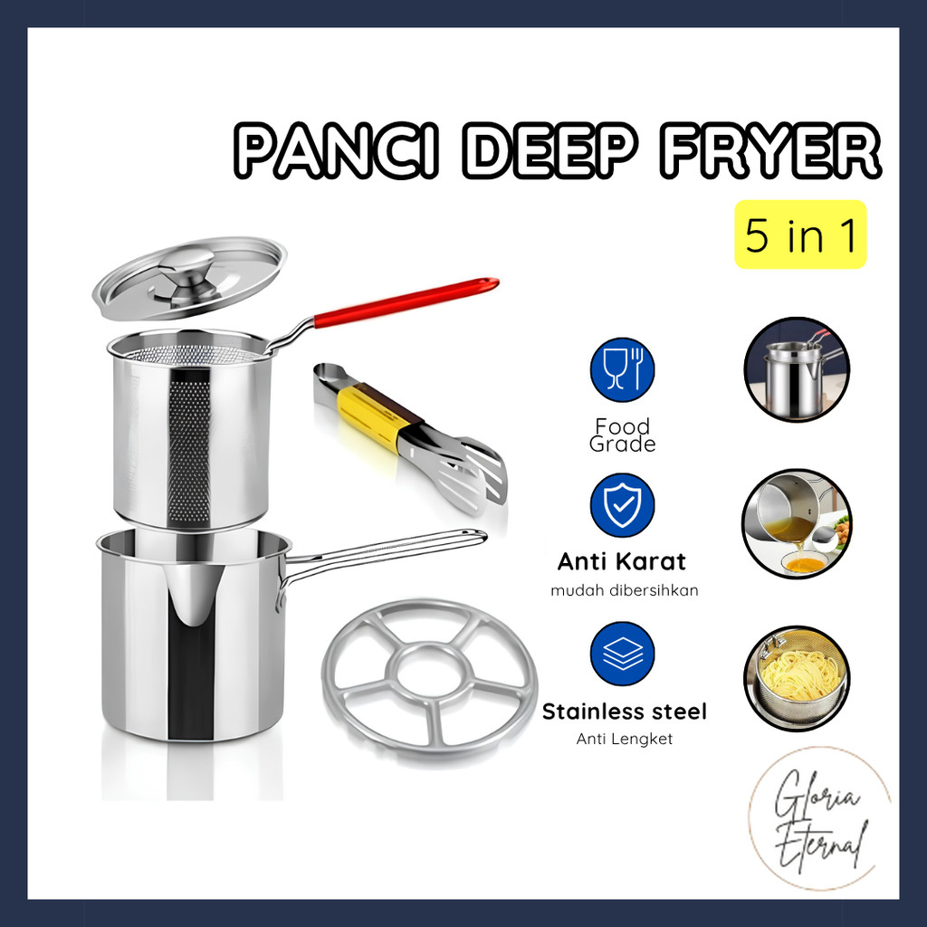 [Gloria] Panci Deep Fryer Set 5 In 1 Penggorengan Rebus Stainless Steel Saringan Capitan Makanan