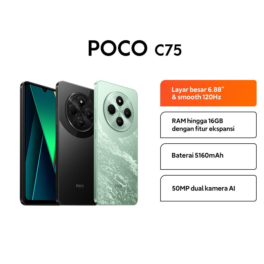 [Mall] POCO C75 (6/128GB) (8/256GB) | Layar 6,88" | 50MP AI | Refresh rate 120 Hz | Baterai 5.160mAh | 18W Pengisian cep