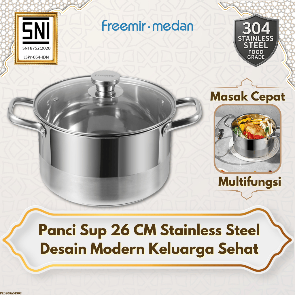 【】 Panci Sup 26 CM Stainless Steel Multifungsi Anti Karat Kapasitas Besar
