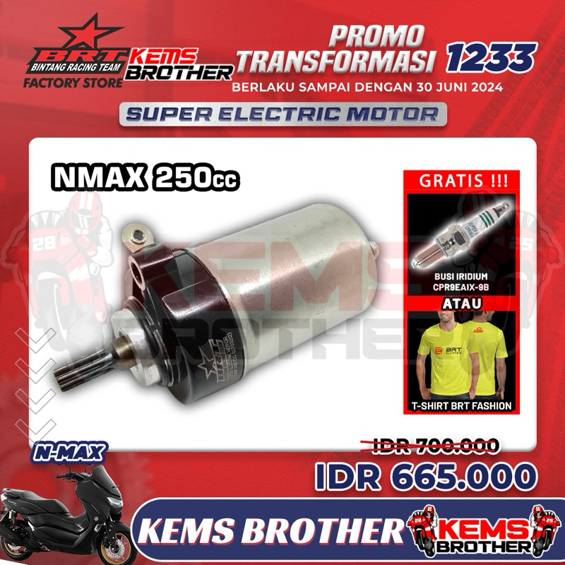 Dinamo Starter Super Electric Original BRT Gratis TSHIRT/ Busi Racing Iridium NMAX MIO J MIO M3 BOREUP 250CC